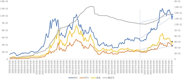 五、上述token的表現很符合我們之前講的蓄水池模型,流動性是逐級遞減。Ethereum這半年表現不如Bitcoin的點在于: