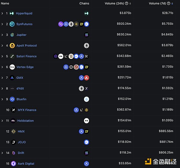 去中心化衍生品交易所7日交易量排序來源:DeFiLlama