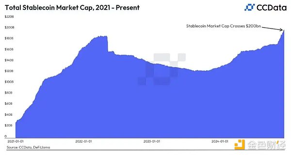 穩(wěn)定幣市值在2024年達(dá)到2000億美元|圖片來源:CoinDesk