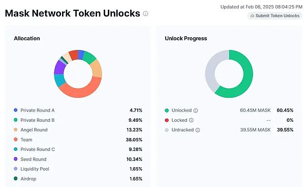 截至2024年1月,MASKNetwork的Tokens已全部解鎖。Tokens釋放遵循了從2021年2月的1091萬枚逐步增加到2024年1月的1億枚的流通供應量增長,從而優化了流動性以支持長期發展。資金流入與流出