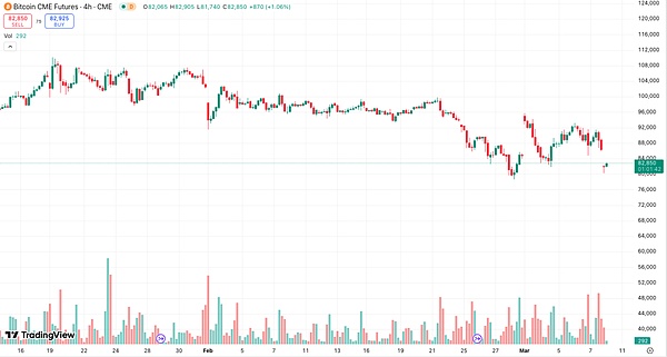 今日早間,Bitcoin再度觸及了8萬美元關口,在撰寫本文時已反彈至82500美元上方。周末的下跌也讓CME的Bitcoin期貨圖表上和上周一樣留下了巨大的缺口。