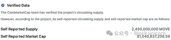 按CoinMarketCap數據,MOVE自稱流通量為24.5億枚。