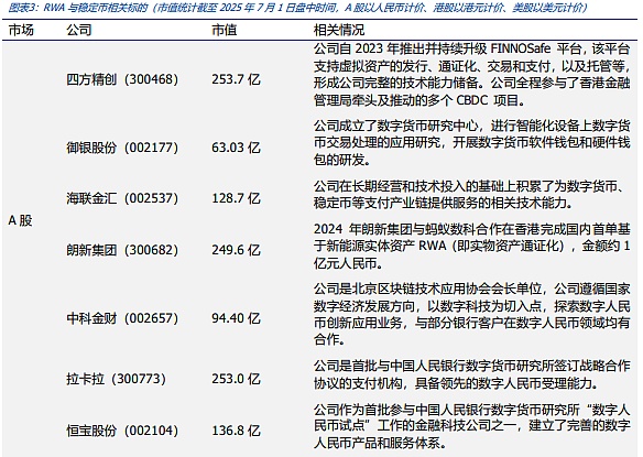 可以預見的是,股票Tokens化有望加速落地,這將成為穩定幣重要的應用場景,而美股市場的規模有望推動穩定幣規模快速擴張。3.投資建議:關注RWA與穩定幣相關板塊