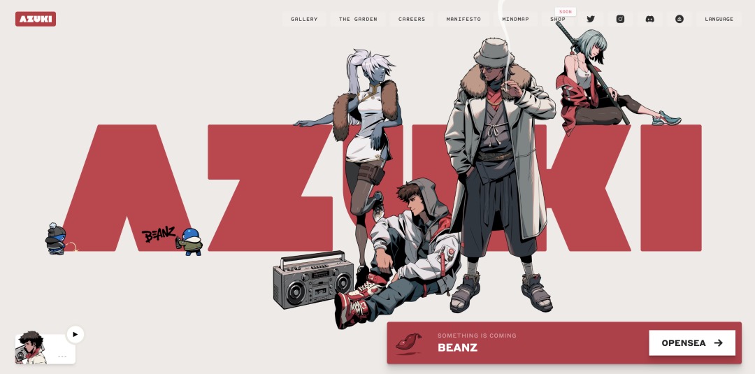 設計AZUKI的首頁效果,雖無炫酷動效,但整體效果絕對是最佳