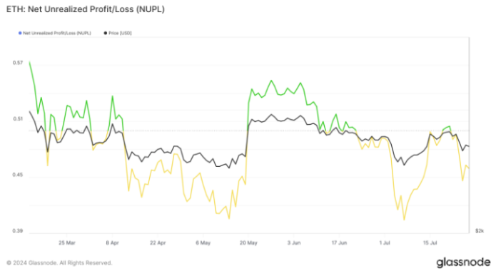 盡管如此,根據凈未實現利潤/虧損(NUPL)指標,散戶投資者依然對ETH價格持樂觀態度。NUPL指標目前位于樂觀區域,表明這些投資者預計價格在未來交易時段中會上漲。