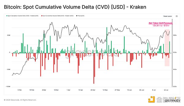 如果我們將與Kraken相關的CVD指標分離出來,我們可以看到賣方壓力在該再賠付事件之后略有上升。然而,仍然處于典型的日常范圍內。