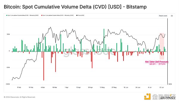 CVD衡量的是CEX現貨買賣交易量之間的凈差額(僅限市場訂單)。